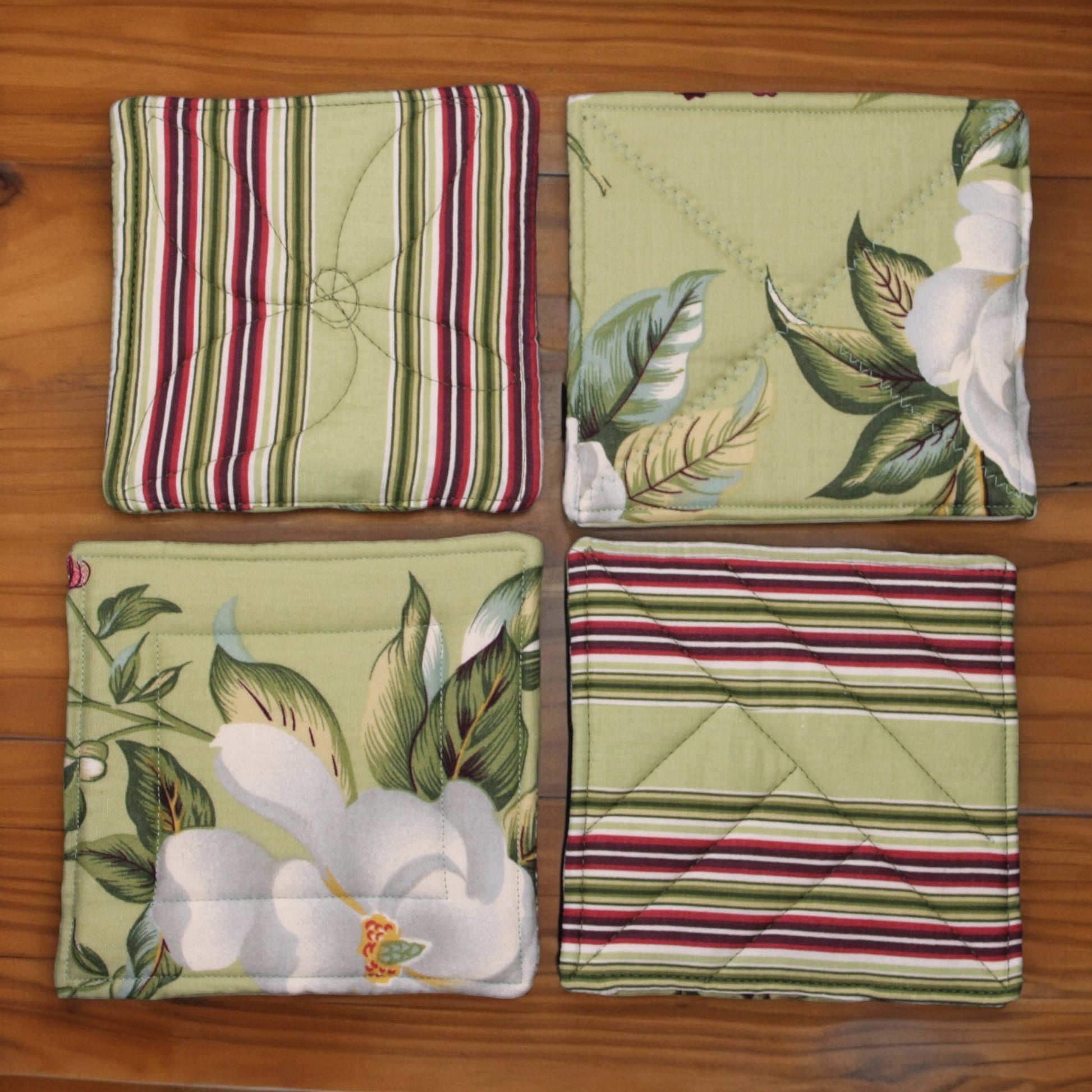 Gorgeous, while still being a workhorse in the kitchen! Formerly a set of napkins, these insulated hot pads will serve you well in their new role!! These potholders are sold individually.
